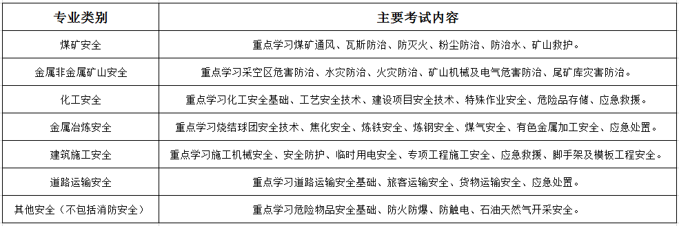 注冊安全工程師考試一共4個考試科目,3個公共科目考試內容都是一樣的,而專業科目7個不同的類別,都對應的不同的考試內容,大致如下圖所示:
