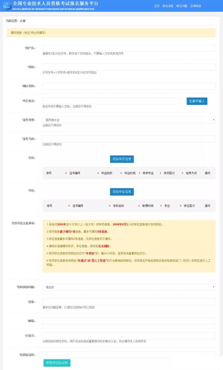 凡是首次使用此系統(tǒng)的報(bào)考人員都必須先進(jìn)行用戶(hù)注冊(cè),注冊(cè)成功后才能進(jìn)行報(bào)名等后續(xù)操作。