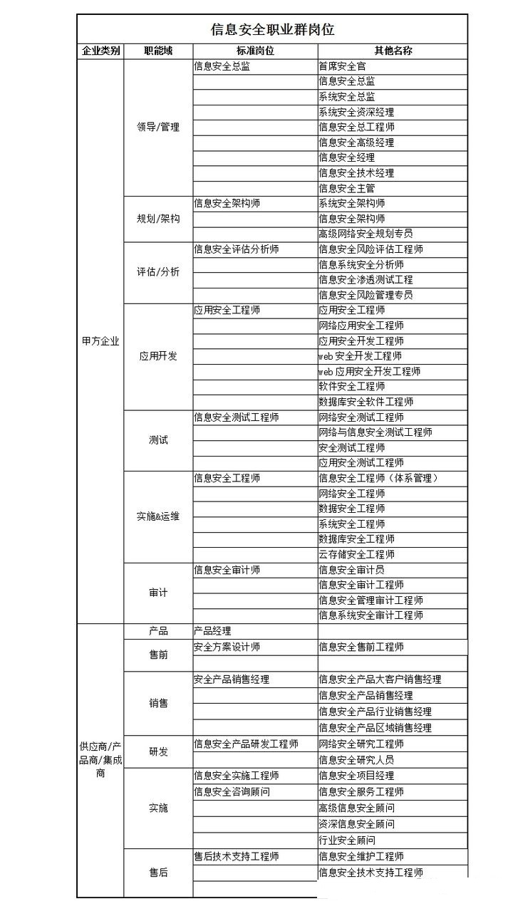 專業(yè)信息安全工程師職業(yè)群崗位表