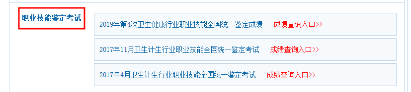 2、進入成績查詢頁面,找到“職業技能鑒定考試”這一欄