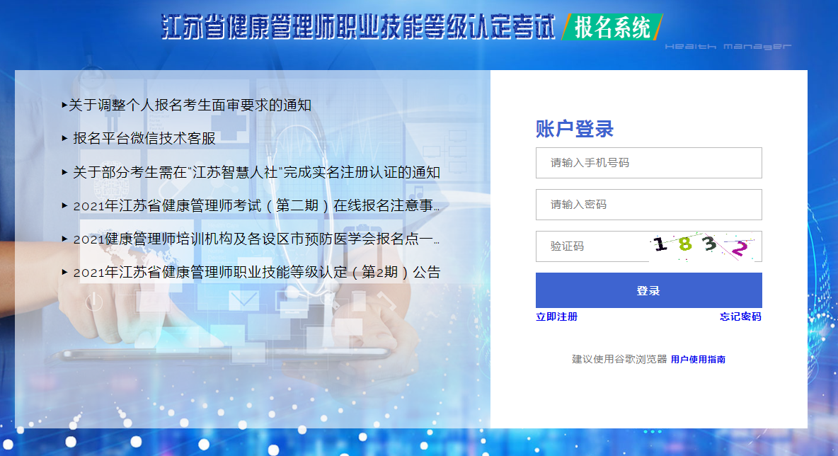 點擊進入>>>江蘇省2021年第二批健康管理師考試報名繳費入口