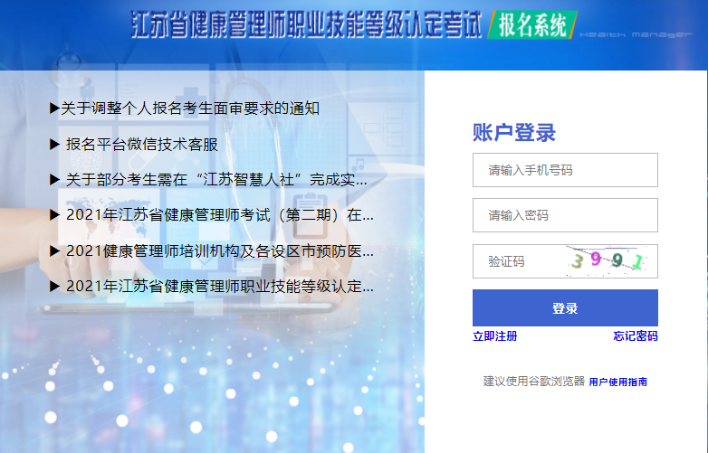 點擊進入>>>江蘇2021年三級健康管理師考試準考證打印入口