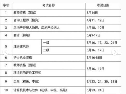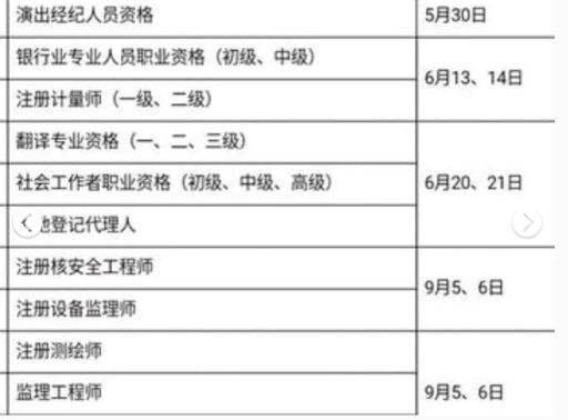 教師資格下半年考試,執(zhí)業(yè)獸醫(yī)資格,文物保護(hù)工程從業(yè)資格,認(rèn)證人員職業(yè)資格,特種設(shè)備檢驗(yàn)、檢測人員資格等具體考試日期由相關(guān)部門另行通知。