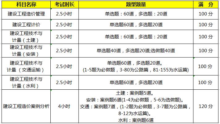 一級造價工程師是全國統考,考試分四個科目:《建設工程造價管理》、《建設工程計價》、《建設工程技術與計量》、《建設工程造價案例分析》。其中《建設工程技術與計量》分為 "土建"、"安裝"、"交通"、"水利"四個子專業,報考人員可根據工作實際選報其一。自2015年度開始造價工程師執業資格考試《建設工程造價案例分析》科目改為在專用答題卡上作答,采用網絡評卷,全國統一組織實施,其他科目的試題均為客觀題,在答題卡上作答。