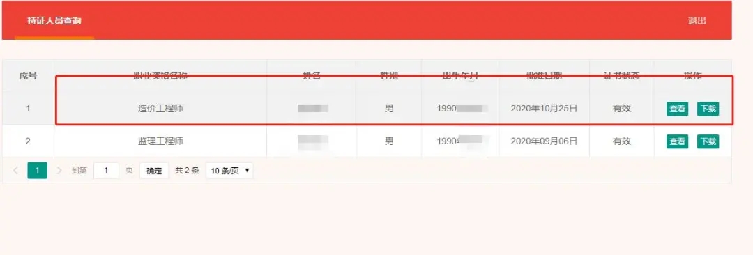 選擇自己想要查驗的證書,如【造價工程師】,點擊【查看】,即可查看證書。