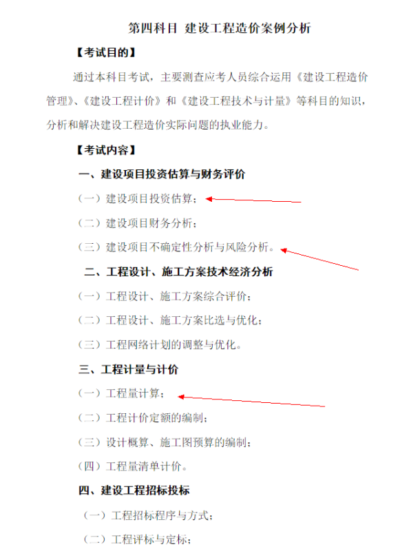 在這四個科目中,《建設工程造價案例分析》科目大綱中,包含了前三個科目中的部分內容,比如: