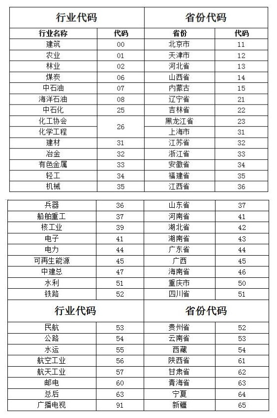 (五)第7、8位為行業管理機構代碼,取值見代碼表。
