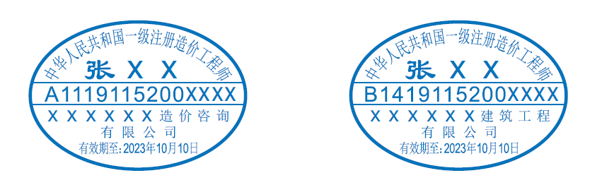 (四)一級造價工程師執業印章的顏色為海藍色;二級造價工程師執業印章的顏色為棗紅色;