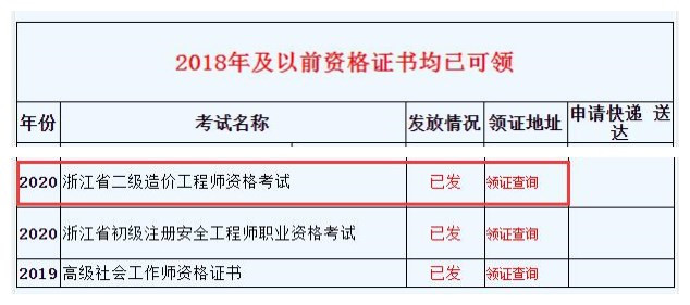 2020年浙江省二級造價工程師考試成績證書領取時間