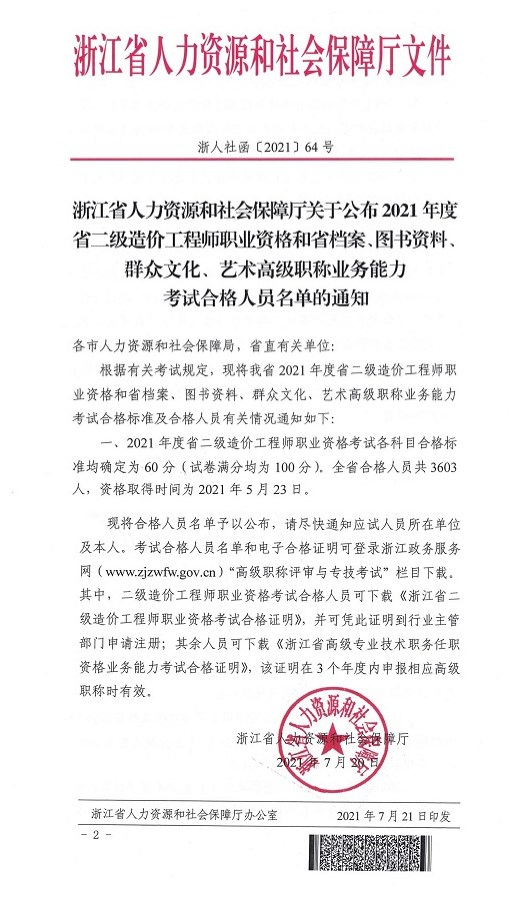 具體詳細的浙江省2021年二級造價師資格考試合格人員名單請往下看: